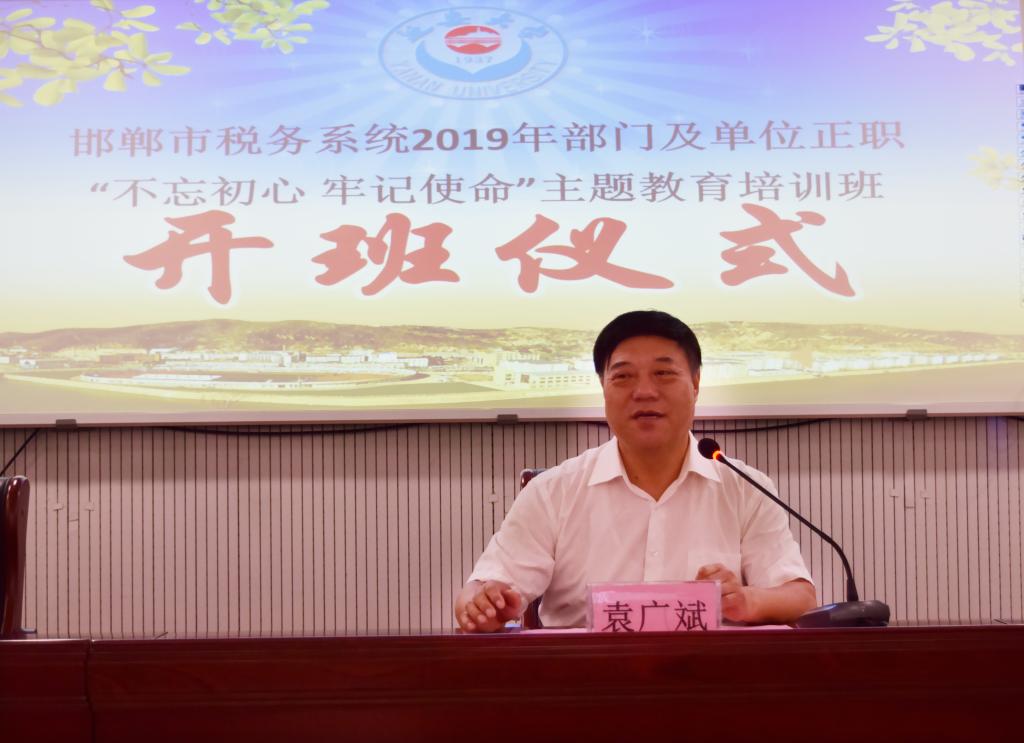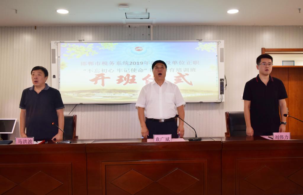 8月5日-8月11日,邯郸市税务局系统在公司将举办为期一周的2019年度部门及单位正职“不忘初心、牢记使命”主题教育培训,并于8月6日上午在公司第三会议室举行开班式。国家税务总局邯郸市税务局党委委员、副局长马洪波,教育科工作人员刘伟力,公司宣传部副部长袁广斌,以及培训班全体学员参加了开班式。仪式由班主任陈若男主持。