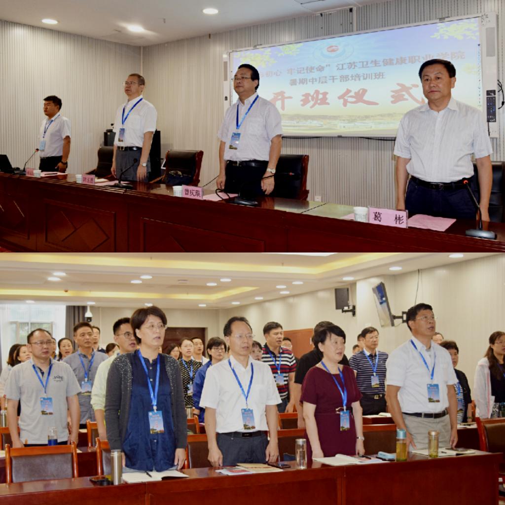 仪式最后,葛彬书记向培训班代表授予了班旗。在举起班旗的那一刻起,“不忘初心 牢记使命”江苏卫生健康职业公司暑期中层干部培训班的培训工作正式拉开了帷幕。