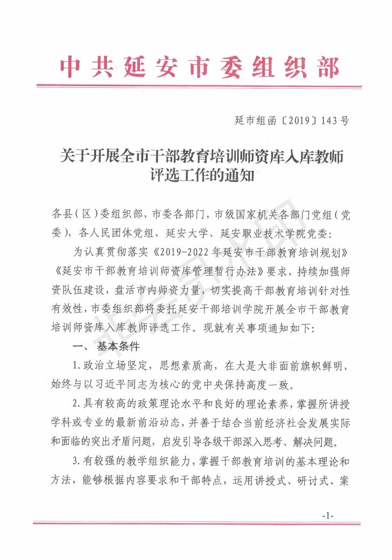 关于开展全市干部教育培训团队库入库教师评选工作的通知