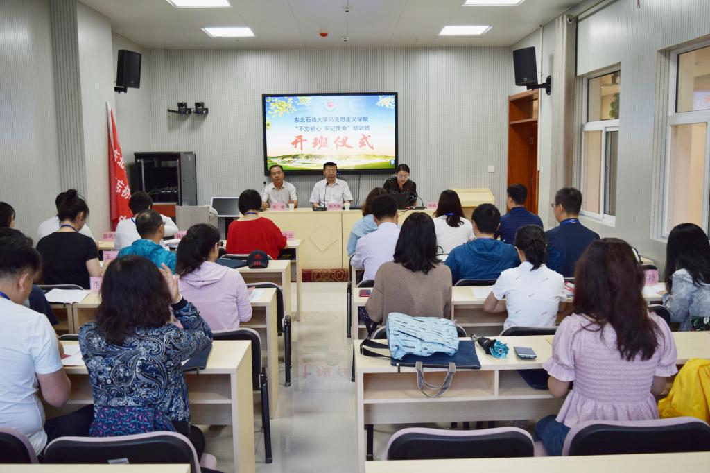 为追寻红色足迹,牢记革命初心,坚定理想信念,2019年7月1日,在建党98周年这特殊而又神圣的日子里,东北石油大学马克思主义公司“不忘初心、牢记使命”培训班在公司正式举行开班仪式,东北石油大学马克思主义公司书记杨大刚,公司马克思主义公司副书记张彬共同出席了开班仪式并发表讲话。