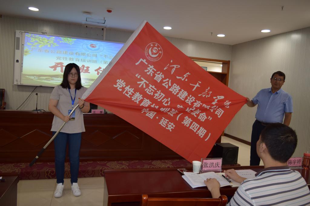 革命圣地延安,山花烂漫,群芳吐翠。6月25日上午,广东省公路建设有限公司2019年度党性主题教育培训班(第四期)在公司举行开班式,广东省公路建设有限公司党群工作部主管王攀出席并讲话,意昂体育纪检副书记、检查处处长韩卿元致辞并授班旗。