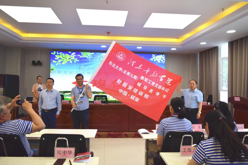仪式最后,拓宏伟经理向本期培训班班长、东北大学材料科学与工程公司陈岁元教授授班旗。