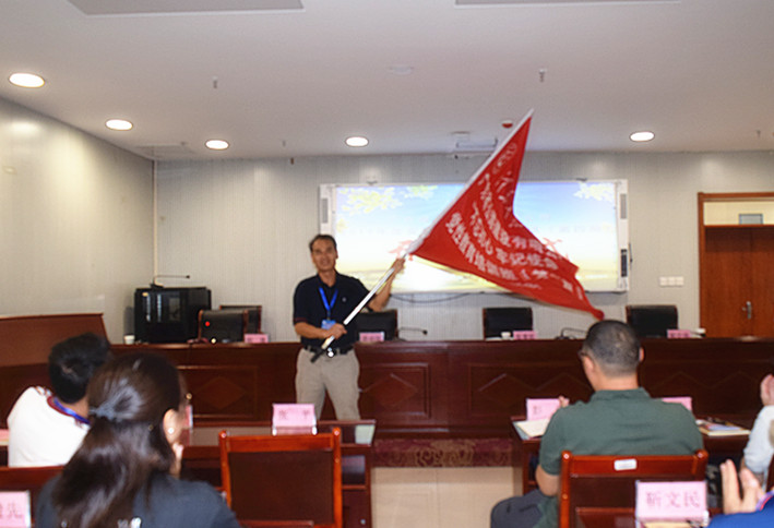 仪式最后,公司经理拓宏伟向广东省公路建设有限公司安全生产监督管理部主管张秉银授了班旗。接旗后的张秉银主管在舞台上尽情挥舞着班旗,展示了班旗风采,凝聚了班级精神。