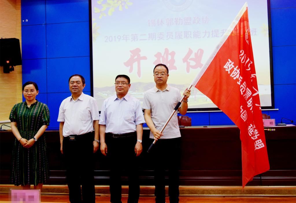 仪式最后,公司党委副书记王顺向培训班班长冀书刚授予了班旗,标志着锡林郭勒盟政协2019年第二期委员履职能力提升培训班培训学习正式拉开了帷幕。