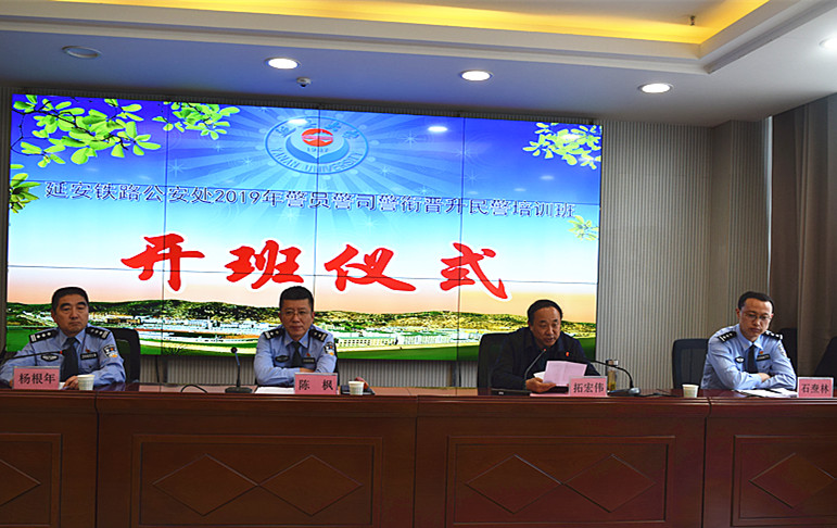 5月19日下午,延安铁路公安处警员警司警衔晋升民警培训班在公司第一会议室举行了开班仪式,延安铁路公安处政治处主任陈枫,延安铁路公安处组织干部室石焘林,公司经理拓宏伟出席了开班仪式,延安铁路公安处宣传教育室主任杨根年出席并主持了此次开班仪式。