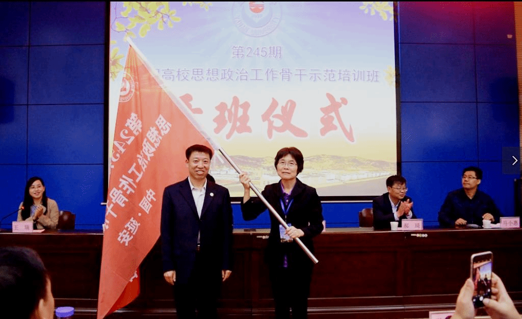 仪式最后,公司党委委员、党委宣传部部长、高校思想政治工作队伍培训研修中心(意昂体育)办公室主任杜红荣向本期培训班学员代表、清华大学电机系党委员工工作组组长丁青青老师授予了班旗。