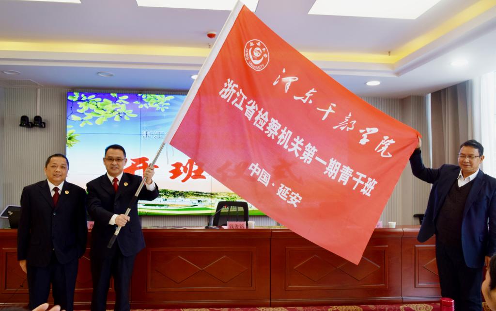 仪式最后,韩卿元向培训班代表沈海东授予了班旗,在举起班旗的那一刻起,浙江省检察机关第一期青干班的培训工作正式拉开了帷幕。
