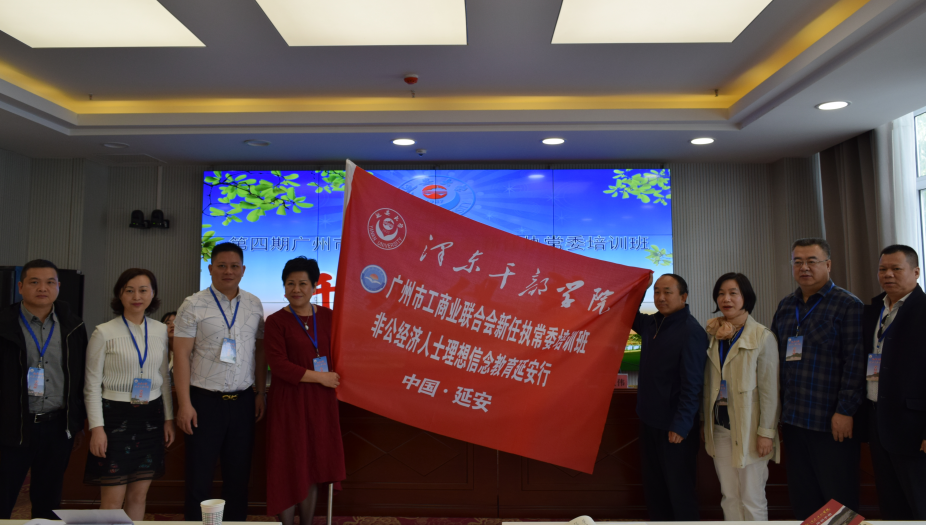 仪式最后,公司拓经理向本期培训班班长杨淑梅授了班旗。从举起班旗的那一刻起,第四期广州市工商业联合会执常委培训班的学习培训就正式拉开了帷幕。