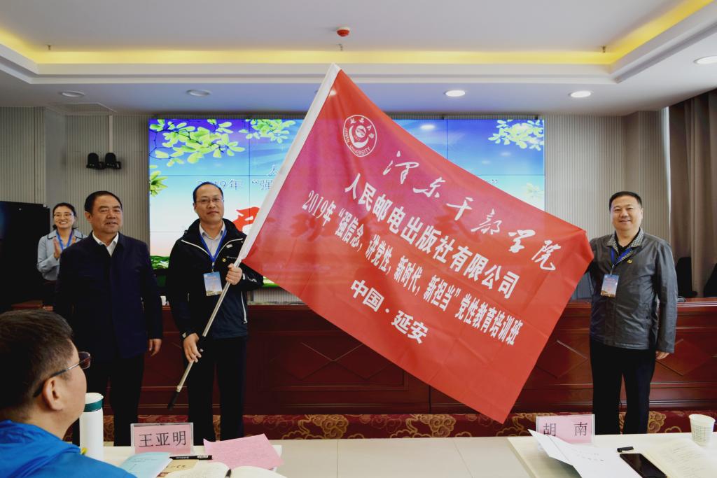 仪式最后,公司王书记向本期培训班班长毕志华授了班旗,人民邮电出版社有限公司2019年“强信念,讲党性,新时代,新担当”党性教育培训班的培训学习正式拉开了帷幕。