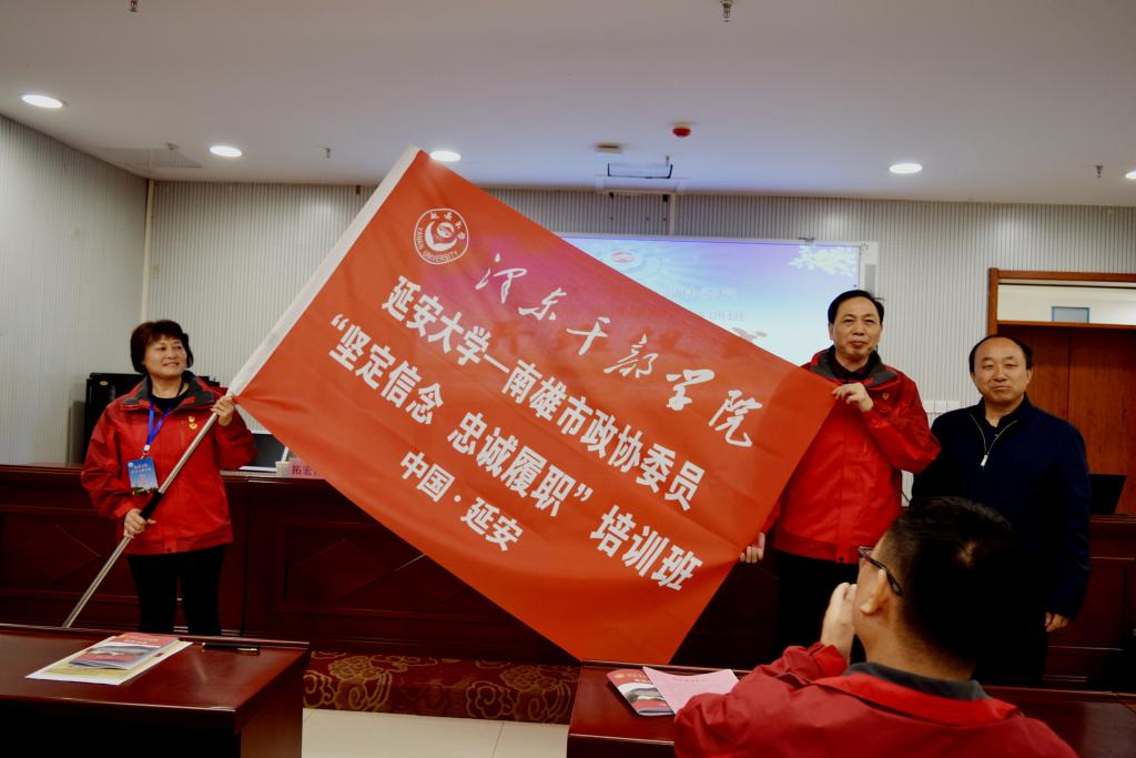 仪式最后,公司拓经理向南雄市政协党组委员、副主席陈尚妹授了班旗。在举起班旗的这一刻起,南雄市政协委员“坚定信念,忠诚履职”培训班的培训学习正式拉开了帷幕。