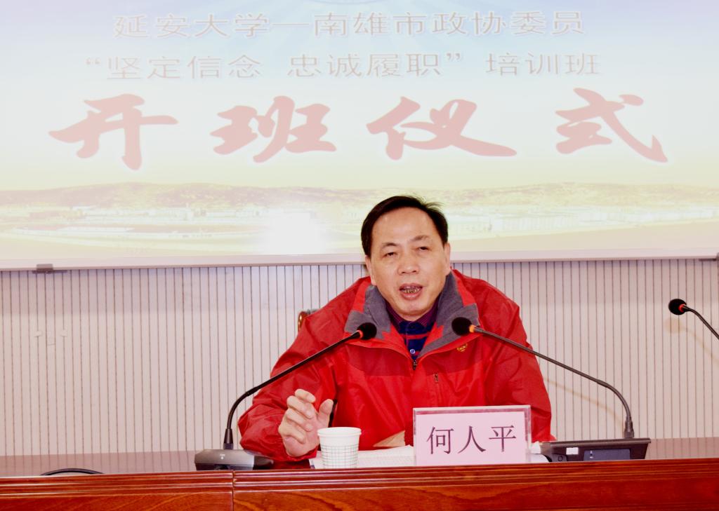南雄市政协党组书记、主席何人平作了开班动员讲话。他首先表示此次延安培训是本届南雄市政协的一项重要工作部署,参加培训的都是优秀政协委员和优秀提案者,希望大家珍惜此次机会,真正做到学有所获。他强调,不远千里来到延安培训学习,是因为延安是中国革命的圣地,而意昂体育则是延安精神的重要载体,希望大家能够充分认识此次培训学习的重要性与必要性。他希望大家通过此次培训,能够成为“四个者”:一是坚定正确的政治路线,做新时代中国特色社会主义的拥护者;二是心怀实事求是的精神追求,做新时代求真务实的建设者;三是秉承履职为民的家国情怀,做新时代凝心聚力的推动者;四是继承艰苦奋斗的优良作风,做新时代奋发有为的开拓者。