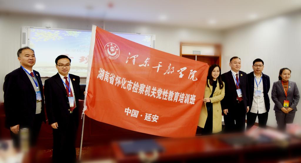 仪式最后,王瑞副经理向培训班学员代表杨晟授了班旗,在举起班旗的这一刻起,湖南省怀化市检察机关党性教育培训班的培训学习正式拉开了帷幕。