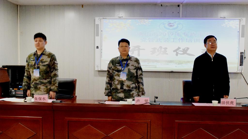 兴武强兵再扬帆,勇立潮头唱大风。经济资源与国防资源融合共享、社会效益与军事效益互促共赢,佛山市2019年专武干部来公司开展为期五天的党管武装工作培训。并于4月25日上午举行开班仪式,佛山军分区副司令员卢坚,动员处处长朱保水,公司党委副书记田伏虎出席开班仪式,仪式由班主任张强主持。