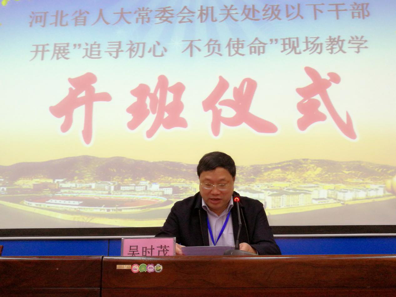 吴时茂副秘书长作了开班动员讲话。首先他提到,延安作为红色宝地、革命圣地,来到延安是为了“追寻初心、不负使命”,就是来寻找党的初心本源、传承和发展延安精神。为了保证学习培训效果,他给大家提几点要求:一要注意言行;二要遵守纪律;三要学有所获。他希望大家通过这次学习能更深刻地领悟延安精神和习近平总书记的学习精神、担当精神、实干精神,达到学初心、悟初心、守初心、践初心的学习目的,以一流标准、一流作风、一流水平投入到河北省人大的工作中。