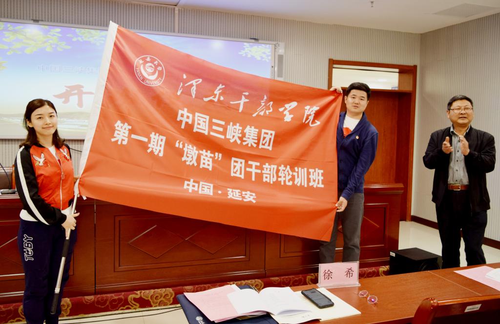 仪式最后,副经理高凤林向中国三峡集团资本团委书记徐希授予了班旗,标志着中国三峡集团第一期“墩苗”团干部轮训班的培训工作正式拉开了帷幕。