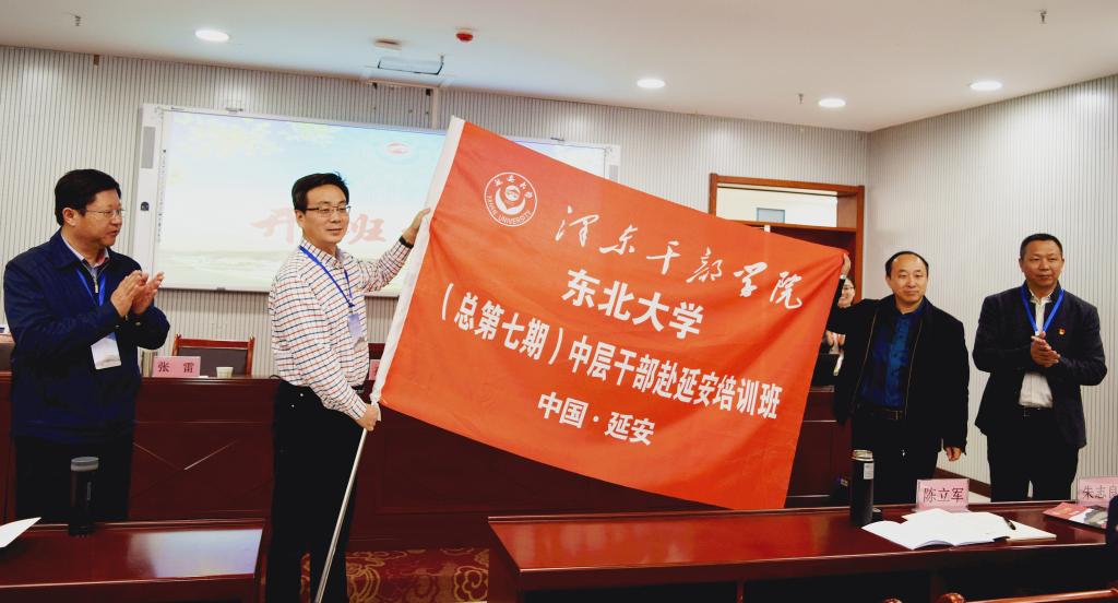 仪式最后,拓宏伟经理为培训班临时党支部书记兼班长张雷授予了班旗,标志着东北大学(总第期期)中层干部赴延安培训班的培训工作正式拉开了帷幕。