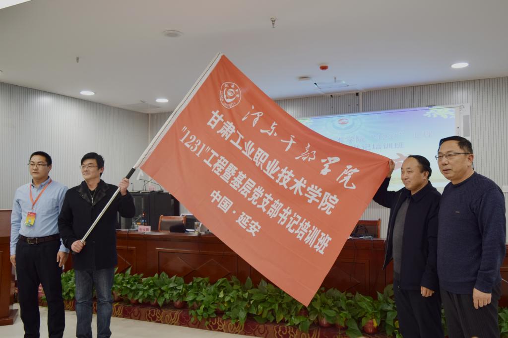 仪式最后,公司经理拓宏伟向培训班学员代表甘肃工业职业技术公司公司党委副书记郭建忠授了班旗。