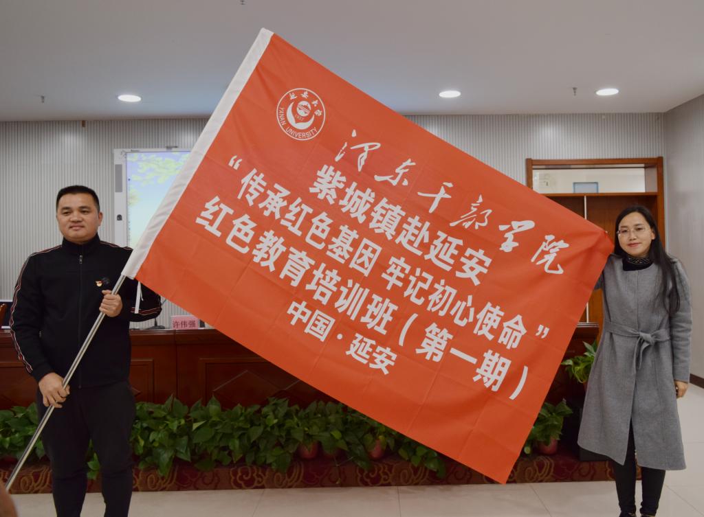 仪式最后,公司副经理王瑞向培训班代表中共紫城镇委副书记、镇长徐伟强授了班旗。